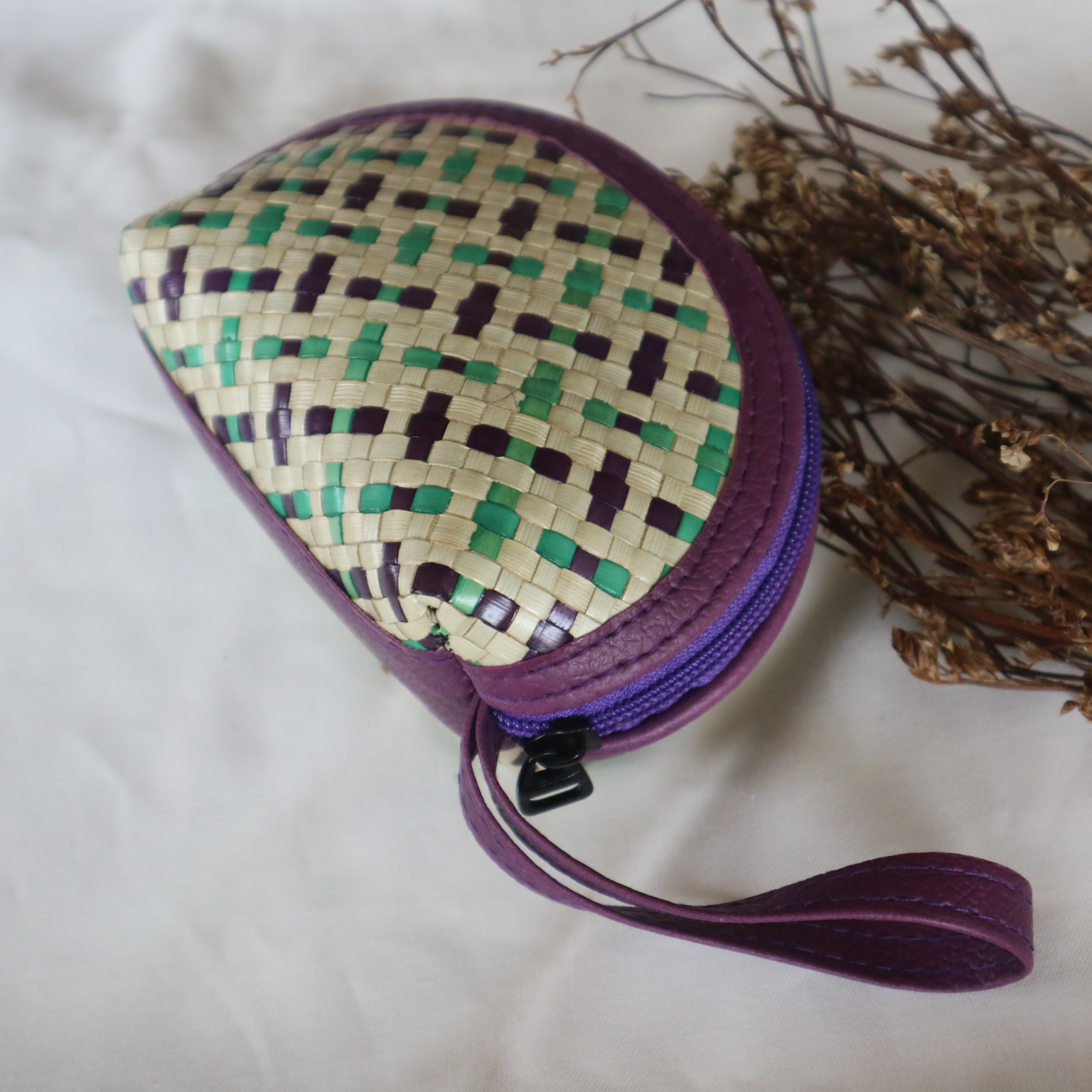 Dompet koin mungil dari anyaman pandan bermotif. Ringan, praktis, dan estetik. Cocok untuk menyimpan uang receh atau barang kecil dengan sentuhan khas tradisional.