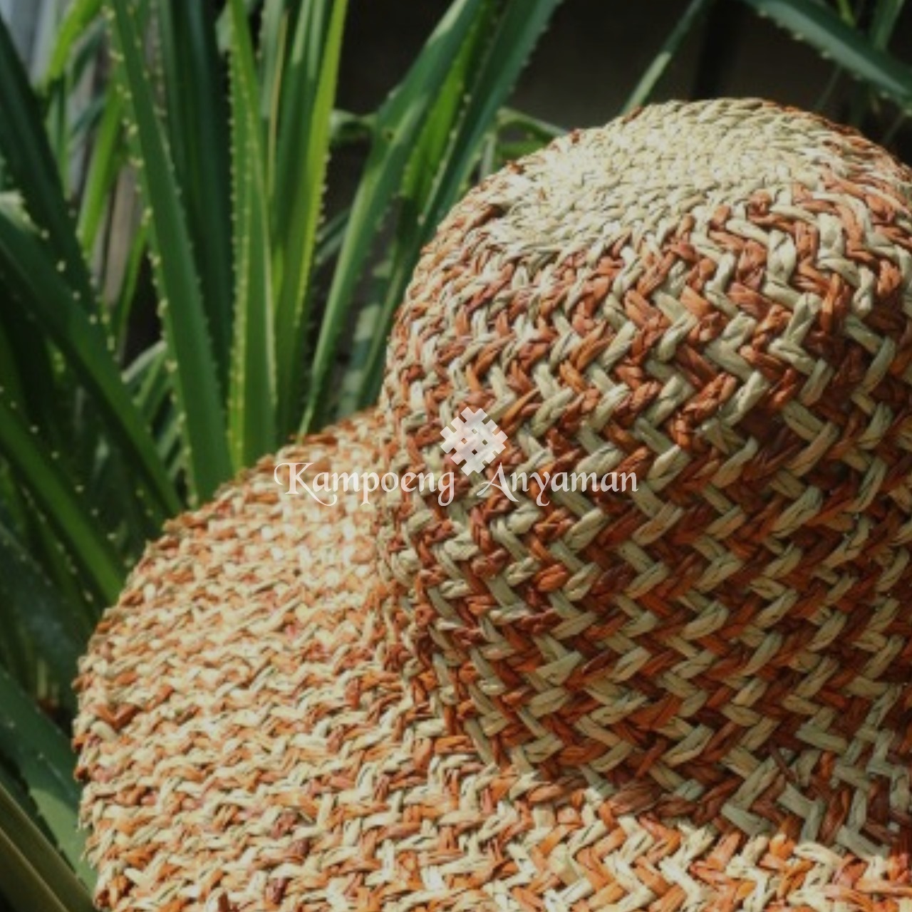 Topi anyaman mendong dengan kombinasi warna yang unik, ringan, dan nyaman. Cocok untuk aktivitas luar ruangan, melindungi dari sinar matahari dengan sentuhan gaya etnik khas.
