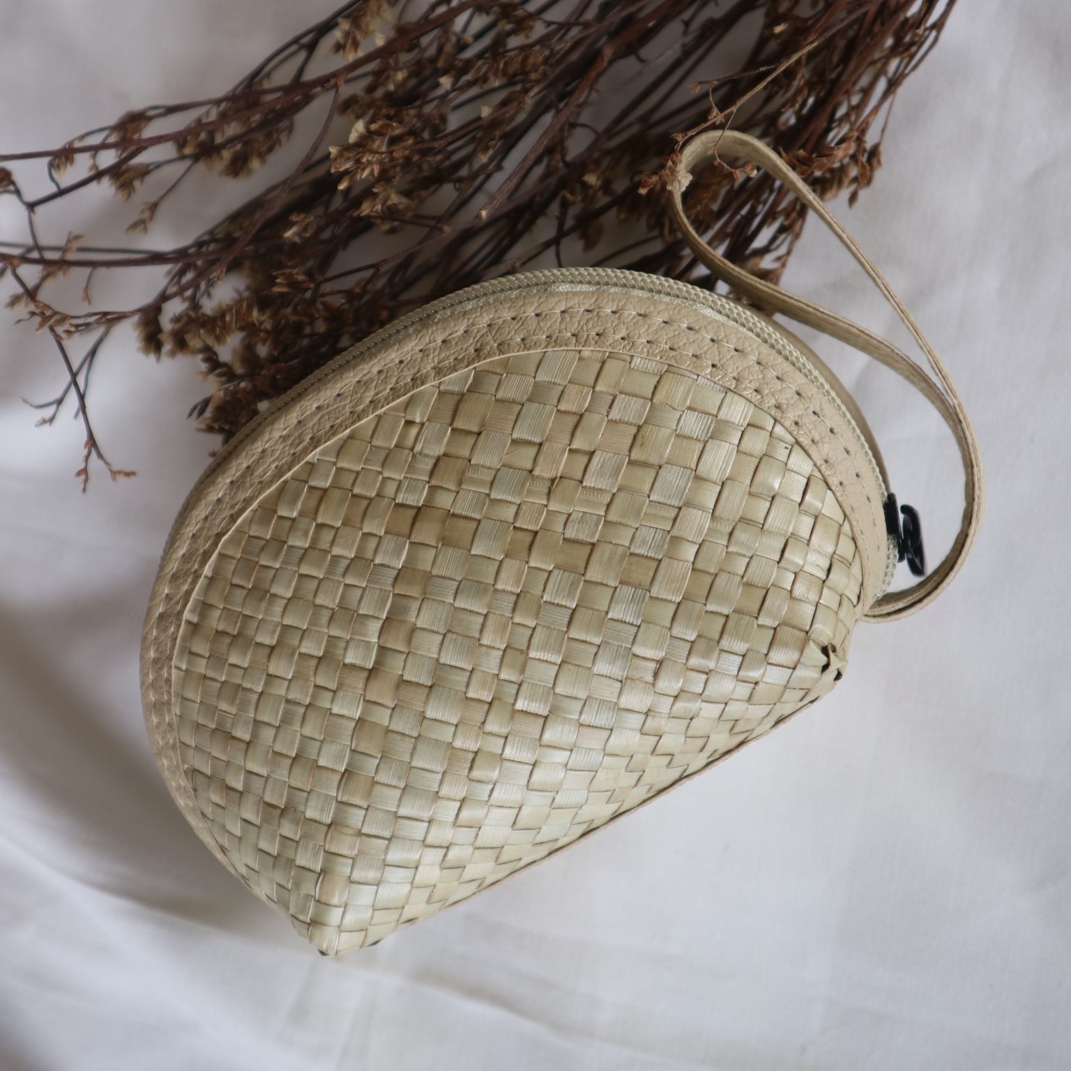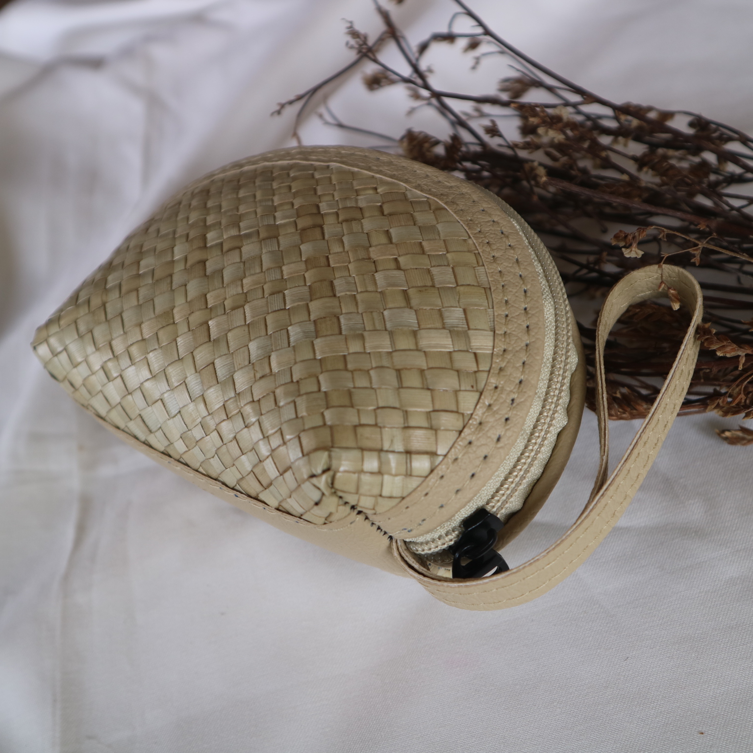 Dompet koin dari anyaman pandan alami, berukuran mungil, ringan, dan praktis. Cocok untuk menyimpan uang receh atau barang kecil dengan sentuhan tradisional.