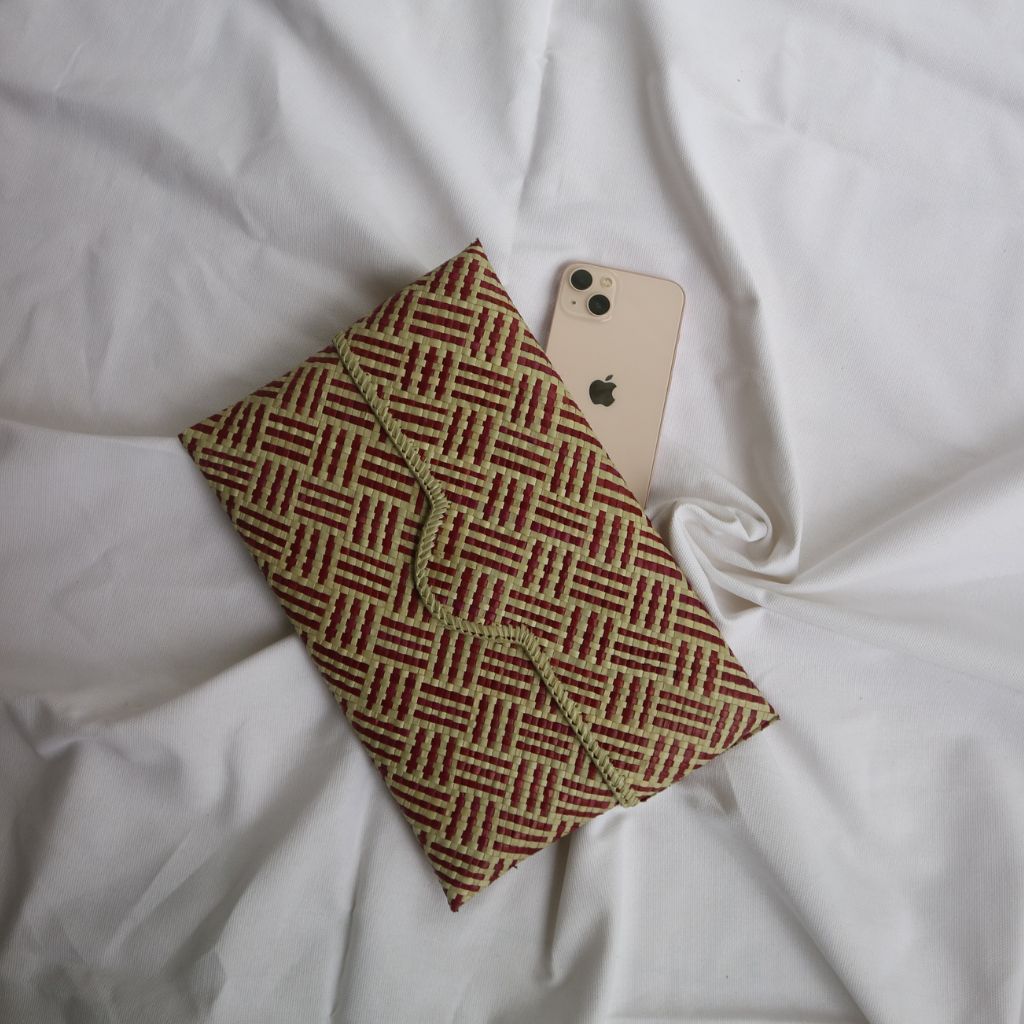 Clutch anyaman pandan ini terbuat dari bahan alami berkualitas tinggi yang dianyam dengan teliti, menciptakan desain yang elegan dan mewah. Dengan ukuran yang kompak, clutch ini ideal untuk acara formal atau pesta, memberikan sentuhan alami yang tetap terlihat anggun.
