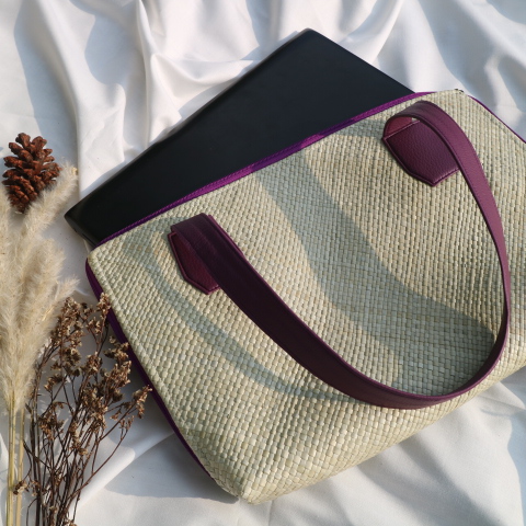 Lumine Bag adalah tas laptop berbahan anyaman pandan yang elegan dan ramah lingkungan. Desainnya minimalis dengan pegangan kuat, cocok untuk aktivitas profesional maupun kasual.