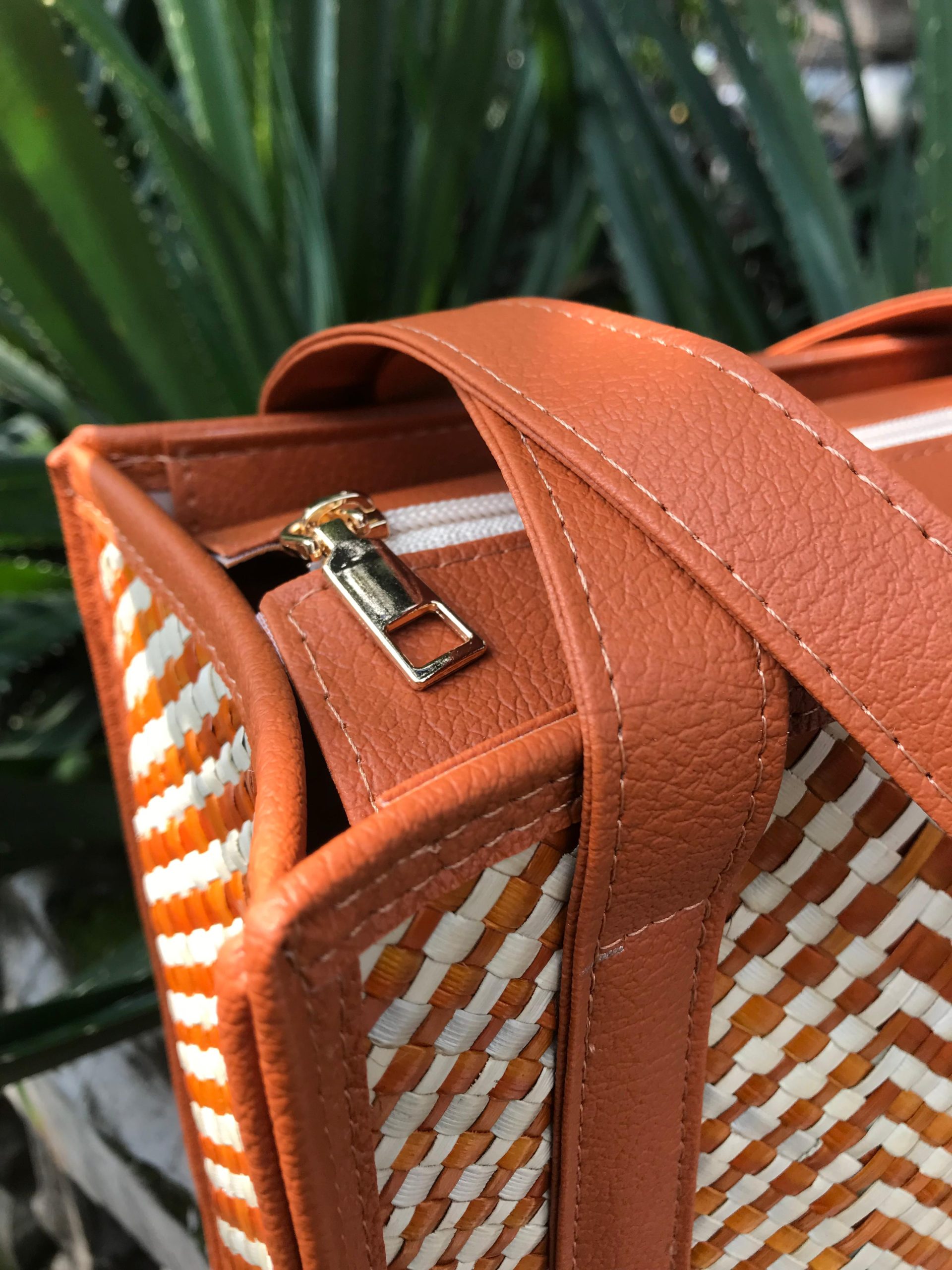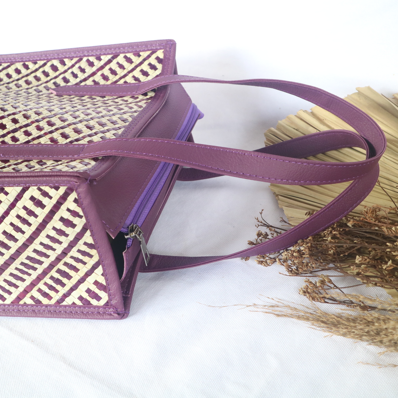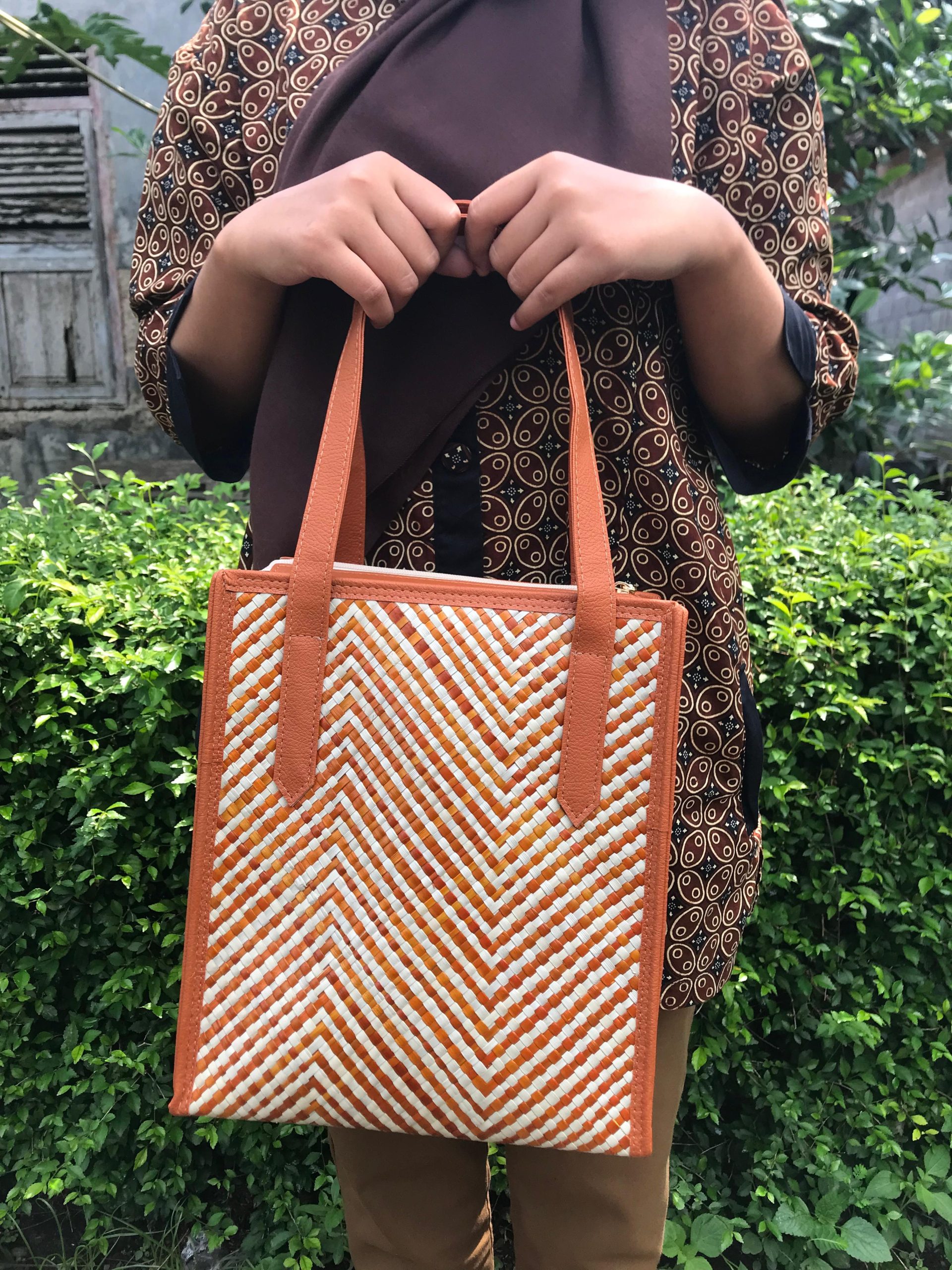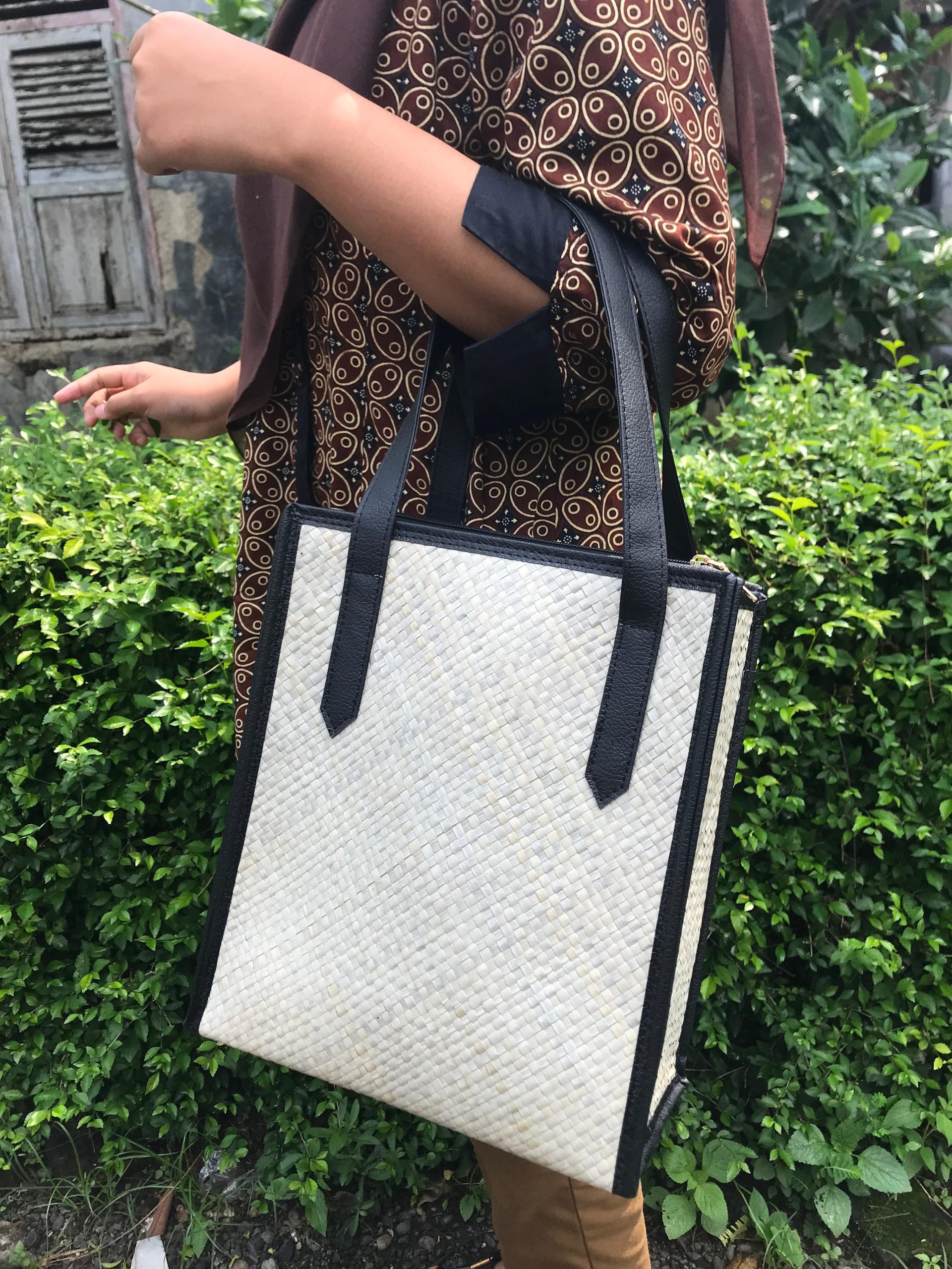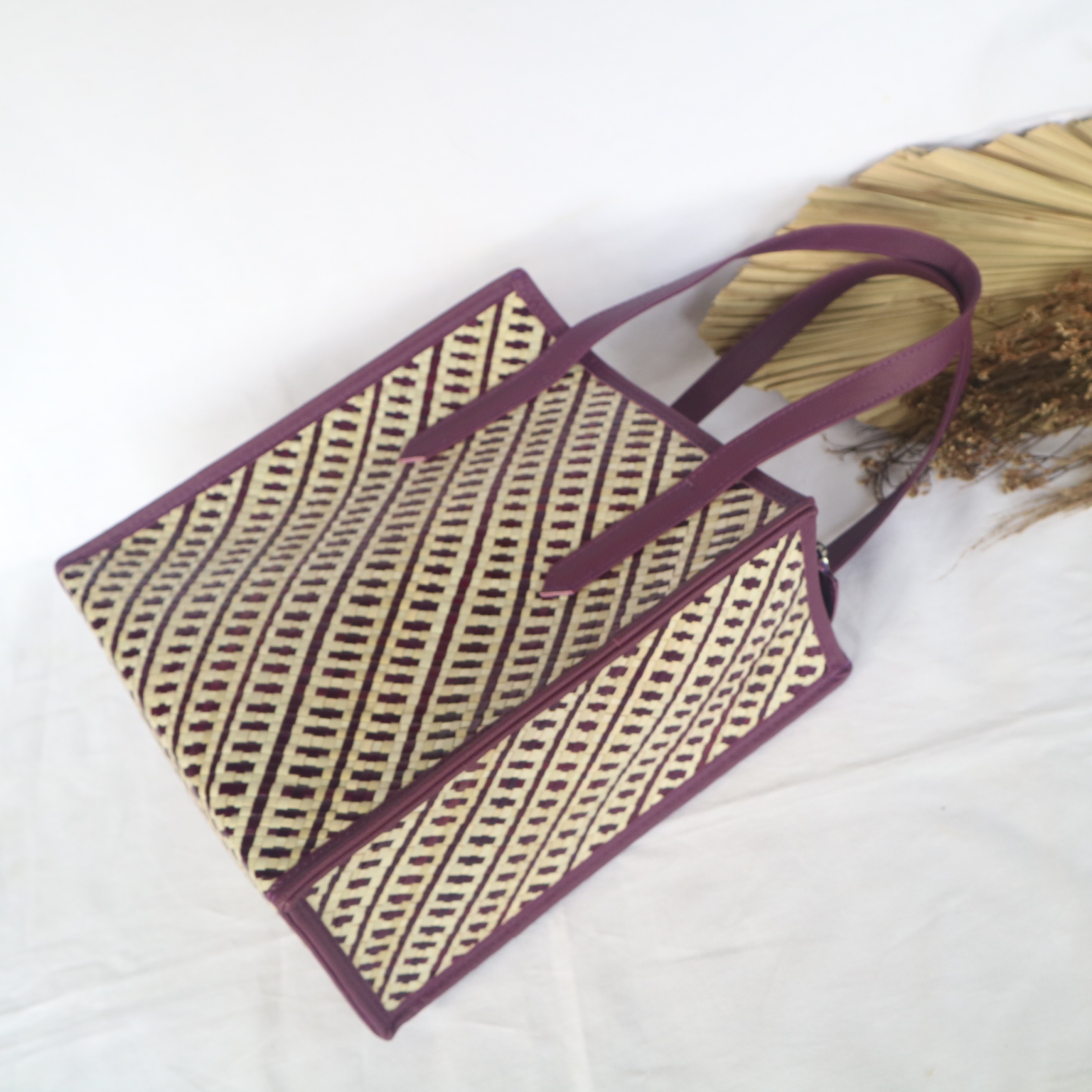 Tas tote ini menggabungkan bahan alami dengan motif yang menarik, memberikan sentuhan gaya tropis atau bohemian yang elegan. Ramah lingkungan dan praktis, tas ini sempurna untuk kegiatan sehari-hari, dari berbelanja hingga jalan-jalan santai.